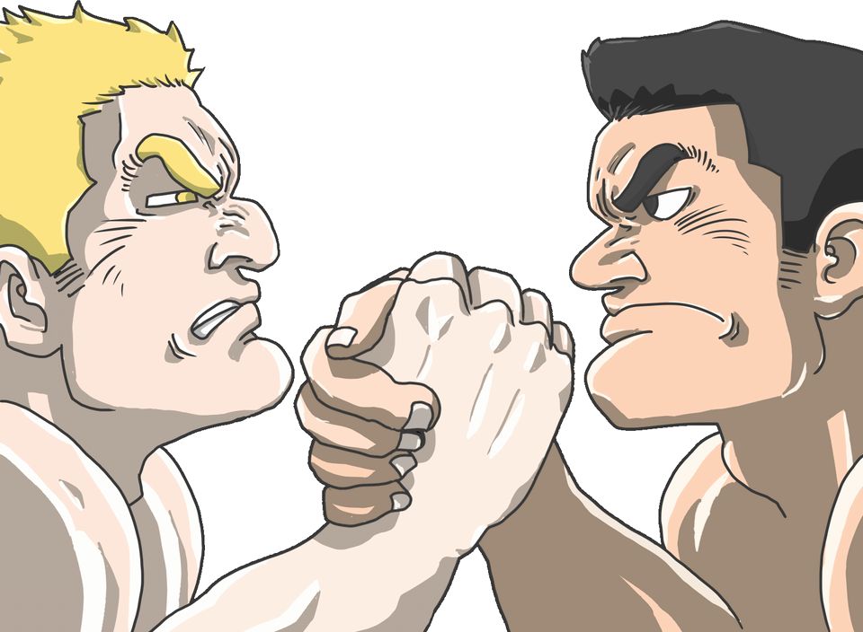 アームレスリングの場合はアームレスリング台の構造やルール上の規制により、引くとどうしてもファールになりやすく、使える引く力には上限があります。